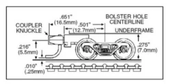 Micro-Trains 1033 (003 02 032) Roller Bearing Truck With Medium Couplers 1 Pair