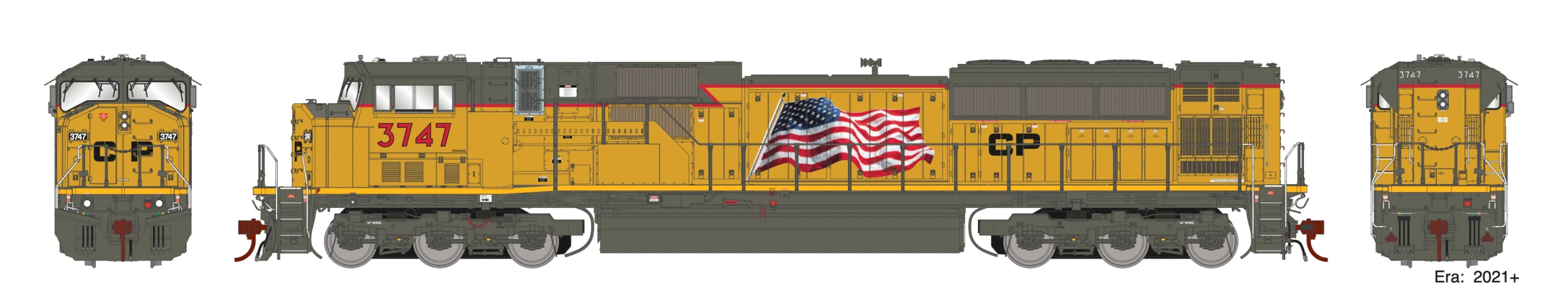 In 2021, CP went on the used locomotive market and purchased a small batch of ex-UP SD9043MAC’s. These were quickly patched still in their UP numbers, and released into service. CP 3747 was neatly re-lettered with CP initials and still features the American Flag on its flanks.