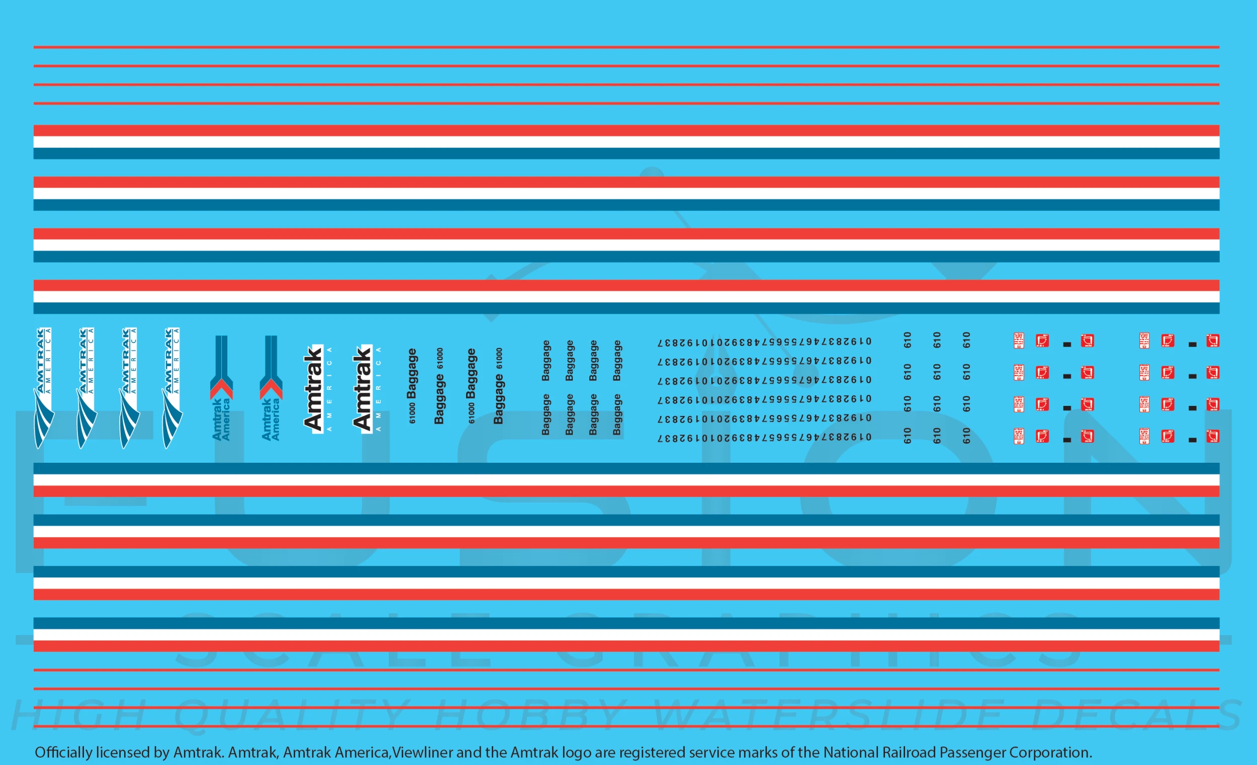 Fusion Scale Graphics AMTK3030-160 N Scale Amtrak Phase III Viewliner Baggage Car Decal Set