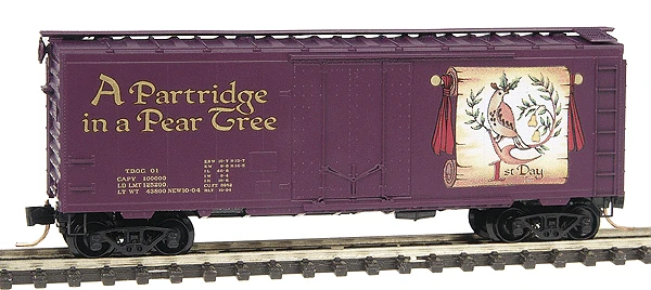 Micro-Trains 21501 N Scale 40′ Boxcar Twelve Days of Christmas “Partridge in a Pear Tree”