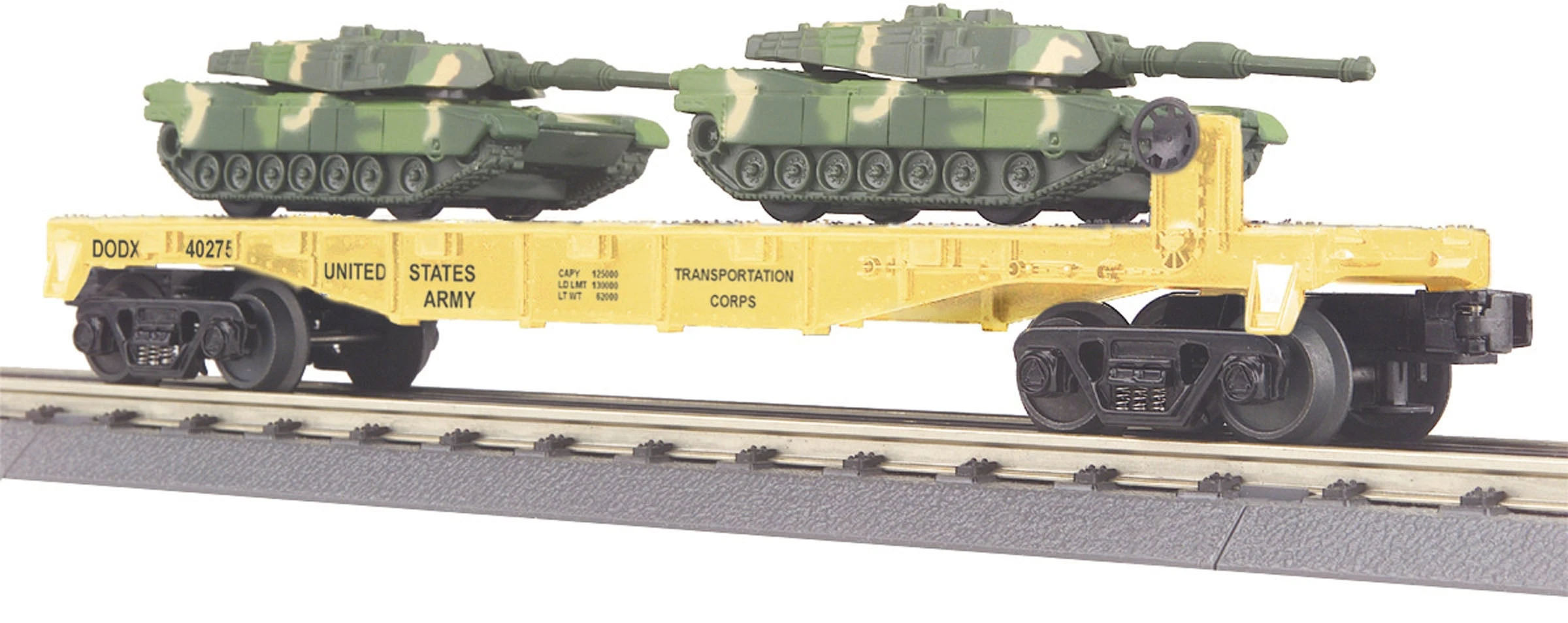 MTH RailKing 30-76040 O Gauge Flatcar with US ARMY M1a Tanks