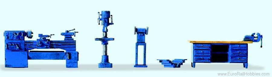 Detail industrial shop interiors with this set of workshop equipment. Each is made of plastic and carefully handpainted to capture the fine details of the real thing.