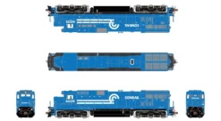 Just when it seemed like NS would be the sole operator of the C39-8, eastern carrier Conrail ordered 22 units, delivered as CR 6000-6021, in 1986. Phase III units that shared some common features as their NS contemporaries, they did have some physical differences unique to Conrail; single-color red marker lights were installed instead of the tri-color class lights found on the NS units, and a massive anticlimber assembly was installed on the front pilot. Delivered in Conrail’s attractive blue and black scheme, they featured the then-standard large Conrail “Wheels on Rail” logo on the long hood.