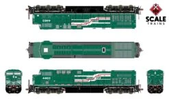 - Factory-applied detail parts: wire grab irons, spare knuckles, trainline hoses with silver gladhands, 3-hose MU clusters with silver gladhands, uncoupling levers, windshield wipers, mirrors, sunshades, and more