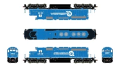 - Front and rear EMD-style low pilot plow with multiple unit (MU) hose doors, 3rd rail notches, and grab irons