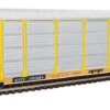 Chances are your new mini-van, light truck, SUV or crossover took it’s first long trip by train aboard a Bi-Level Autorack like this WalthersProto replica! Introduced in the late 1970s as demand for pick ups and similar vehicles increased, these 89′ 6″ (27.2m) flatcars were fitted with racks with just two decks to provide more interior space for higher profile vehicles. A key part of Walthers Auto Series, these highly detailed and fully assembled HO models feature: