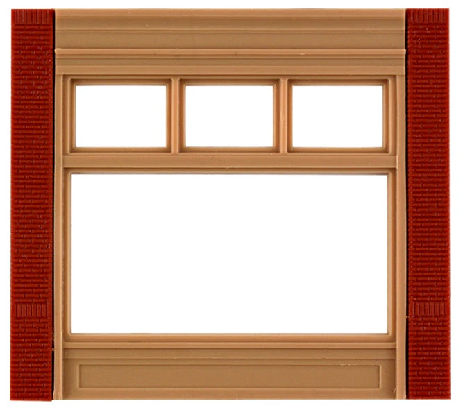 Interchangeable plastic wall sections make it possible to create buildings of any size, shape and height. Build a variety of styles – whatever you want or need. Packages include four identical wall sections with pilasters, plus doors, windows and clear window material where needed. All sections are the same width (2-3/4″ 7cm) and color. Cornice packages include eight sections of Cornice with Cornice pilasters, Dock Riser Wall packages include eight Dock Riser Wall sections with dock pilasters. Powerhouse Window packages include two two-story windows and four walls.