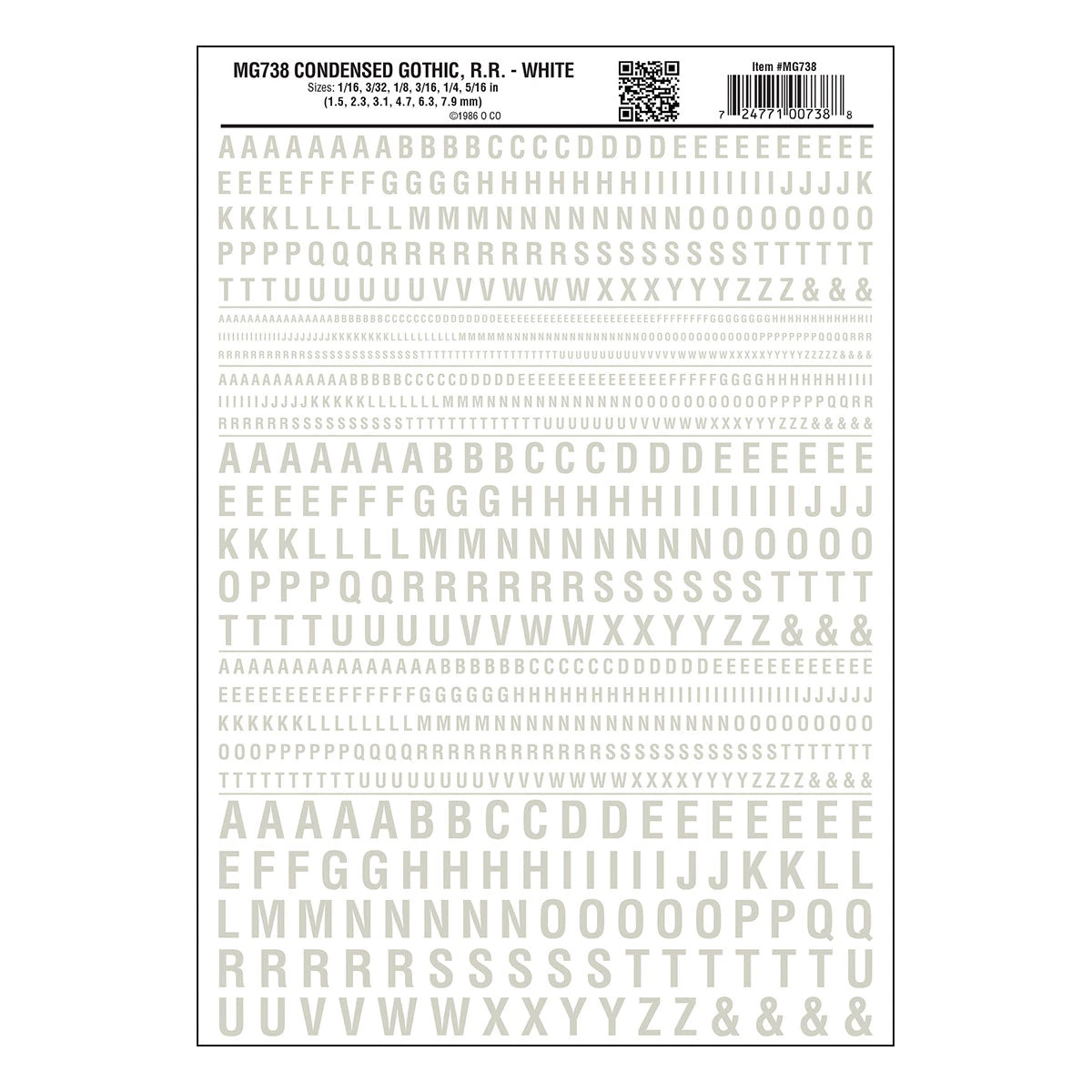 Woodland Scenics MG738 Model Graphics, Short Gothic Letters, White